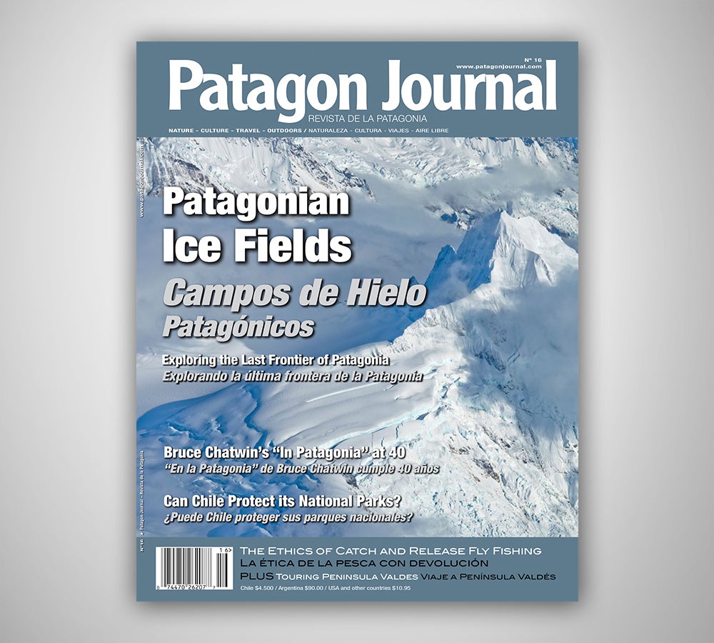 In this edition, we include three stories about three generations of explorers of the Patagonian ice. Andres Pinto writes about his recent odyssey battling the unforgiving conditions of the Southern Patagonian Ice Field. Pablo Besser contributes an essay about his experience completing the first longitudinal crossing of the southern ice fields in 1999. And we profile Cedomir Marangunic, who explored the ice fields with the legendary British mountaineer Eric Shipton in the early 60s. Issue 16 also includes an interview with glaciologist Gino Casassa about climate change and the fast-melting glaciers of the Patagonian Ice Fields. We take a look at Bruce Chatwin and his classic book In Patagonia, on the 40th anniversary of its publication. Cristobal Perez examines whether Chile is truly prepared to protect its expanding national park system. Brazilian photographer João Paulo Barbosa contributes a photography essay featuring images from Patagonia, the Himalayas and more. Wayne Bernhardson gives tips on how to go to one of South America’s top ecotourism destinations, Peninsula Valdes. And among other stories, Jack Miller interviews Yvon Chouinard in his essay on the evolving ethics of catch and release fly fishing.
