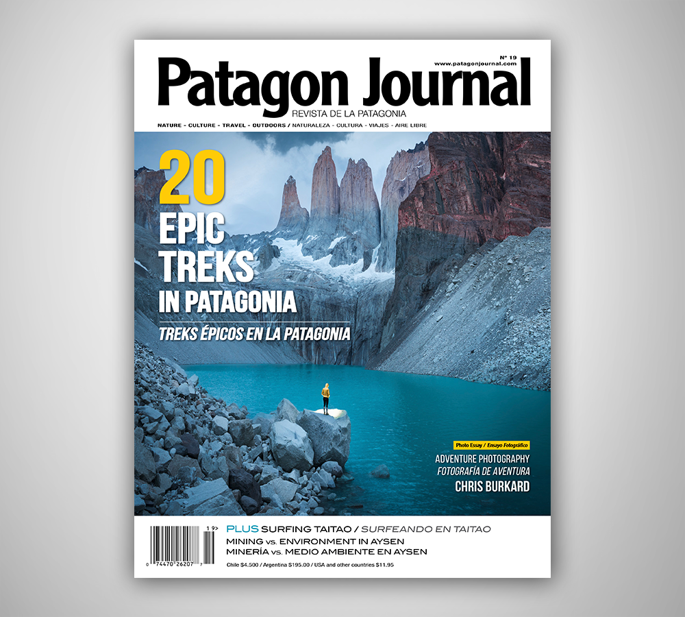 Our lead story this issue is a 22-page feature by Lonely Planet guidebook writer Carolyn McCarthy highlighting 20 of our favorite treks in Patagonia. Adventure photography phenom Chris Burkard contributes a 13-page photo essay from his worldwide travels to wild places. Cristobal Perez reminds us that Patagonia still has room for discovery in his story about a surfing expedition to the Taitao Peninsula on the Aysen coast. Our report about the current conflict over mining ventures in Aysen reveals an environmental threat that has local citizenry rightly in revolt. Zoe Baillargeon writes about the growing trend of Chilean women choosing rock climbing as their favorite sport. Diego Meier contributes a story about the oft overlooked nature and rural travel destinations of Chile’s Osorno province. We also have stories about Penguin Island in southern Argentina, gastronomy in Puerto Natales, and much more.