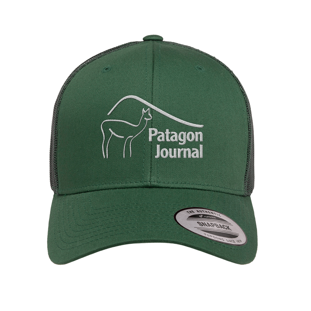 Dress to impress with this evergreen-colored, trucker hat that proudly displays our attractive Patagon Journal logo.